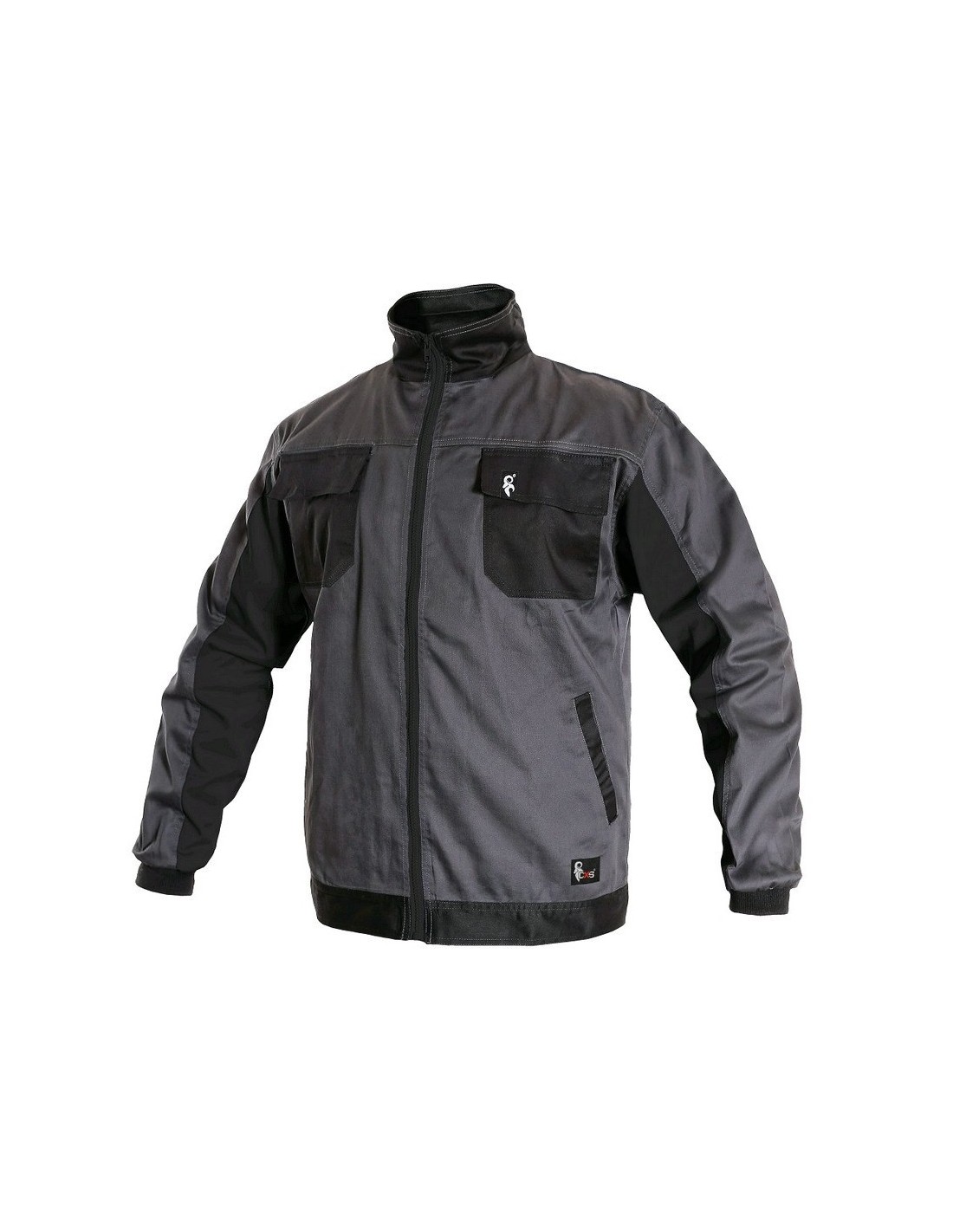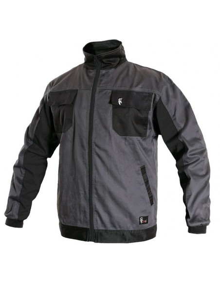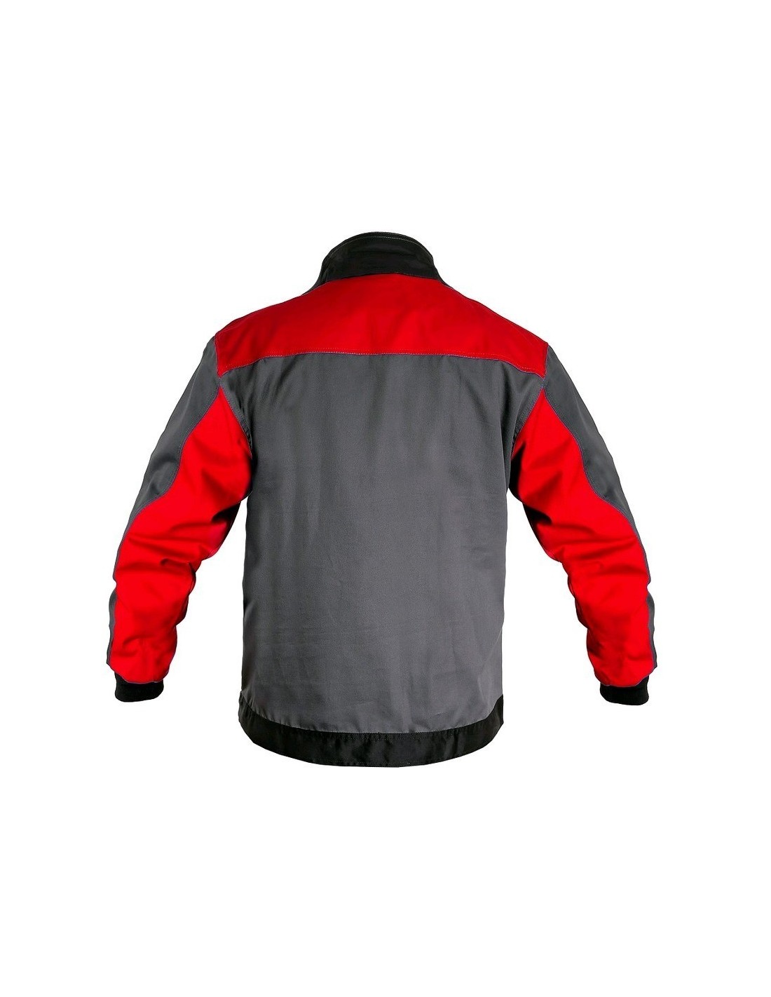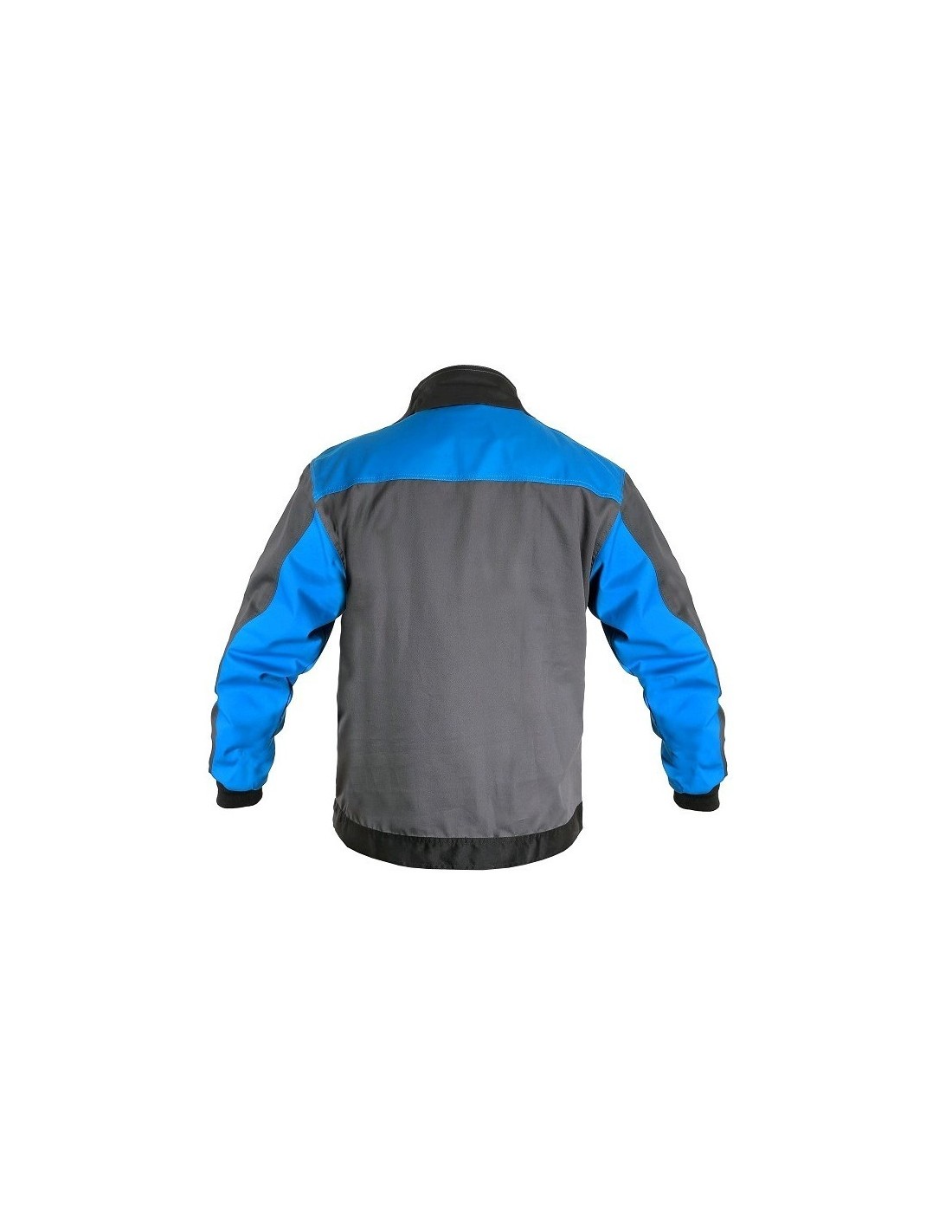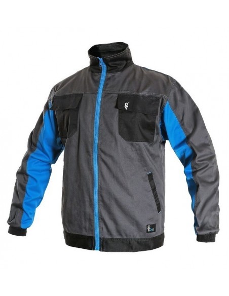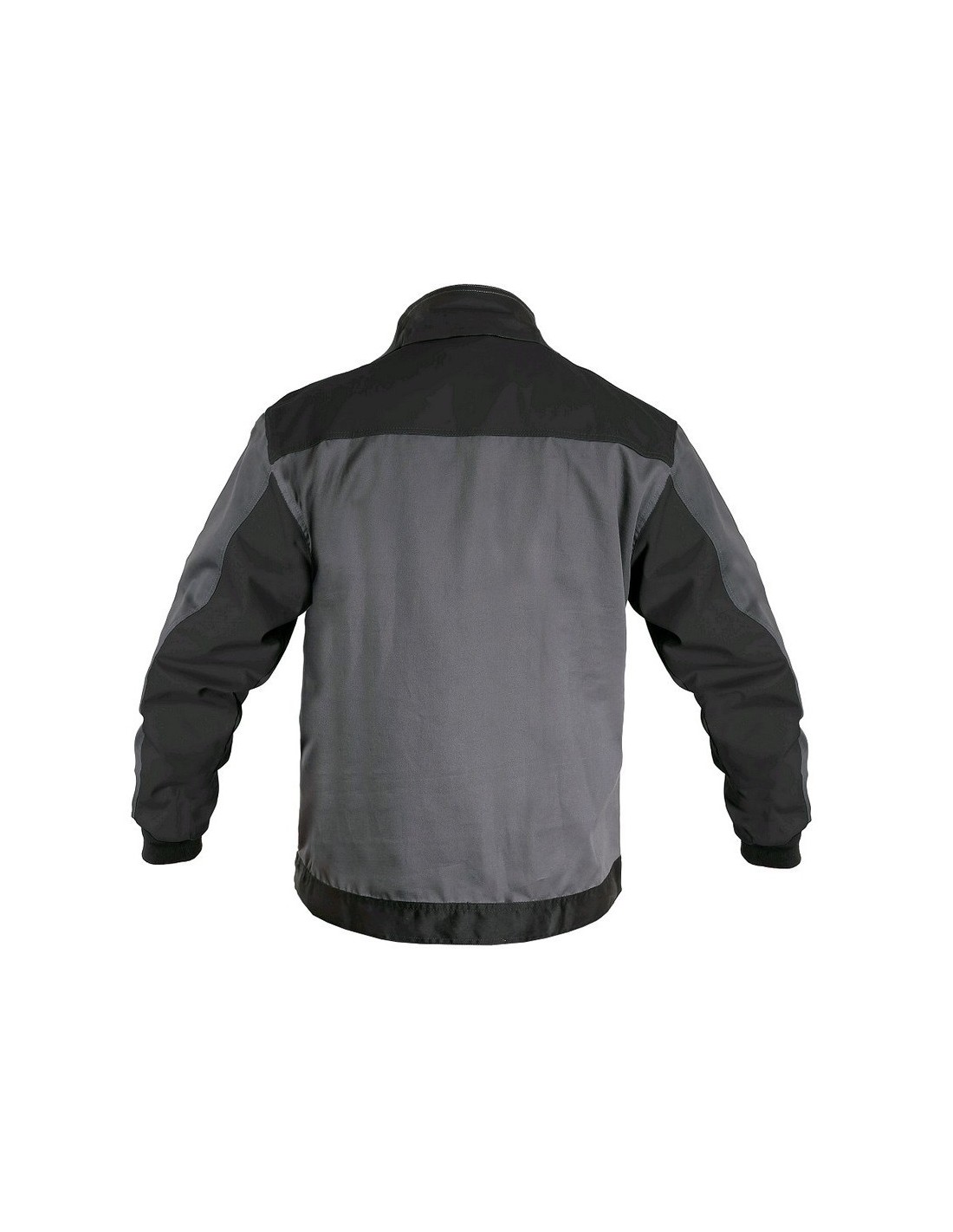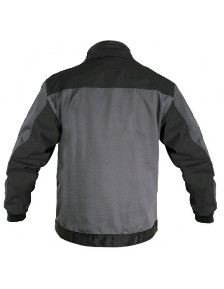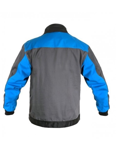 Bluză de lucru confecționată din amestec twill 35% bumbac cu 65% poliester, densitate material 190g/mp, mâneci cu manșetă elastică, închidere cu fermoar, buzunare cu clapetă la piept, buzunare laterale simple, culori: gri-negru-albastru, gri-negru, gri-negru-rosu, gri-negru-galben