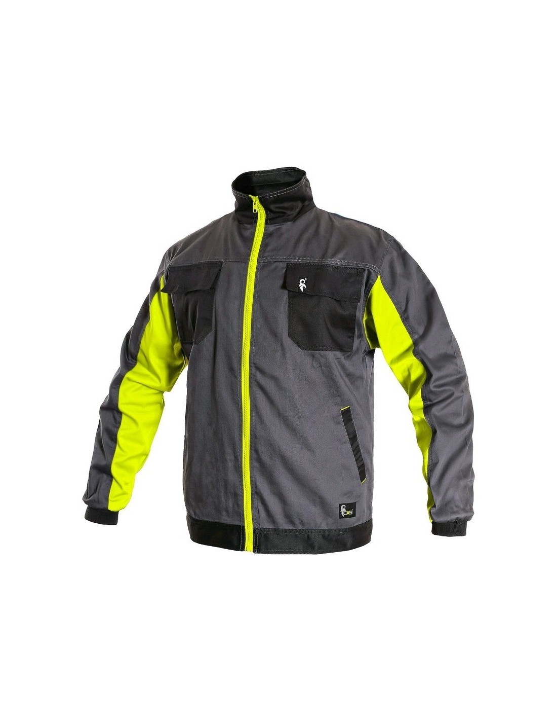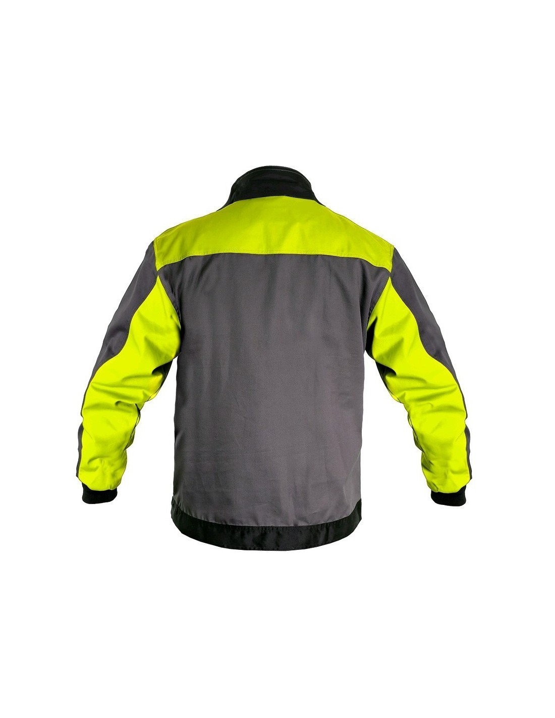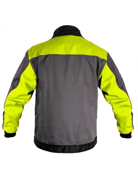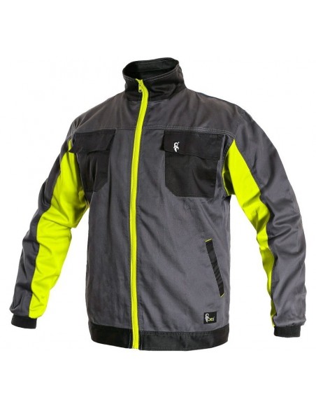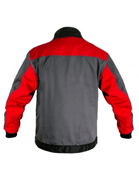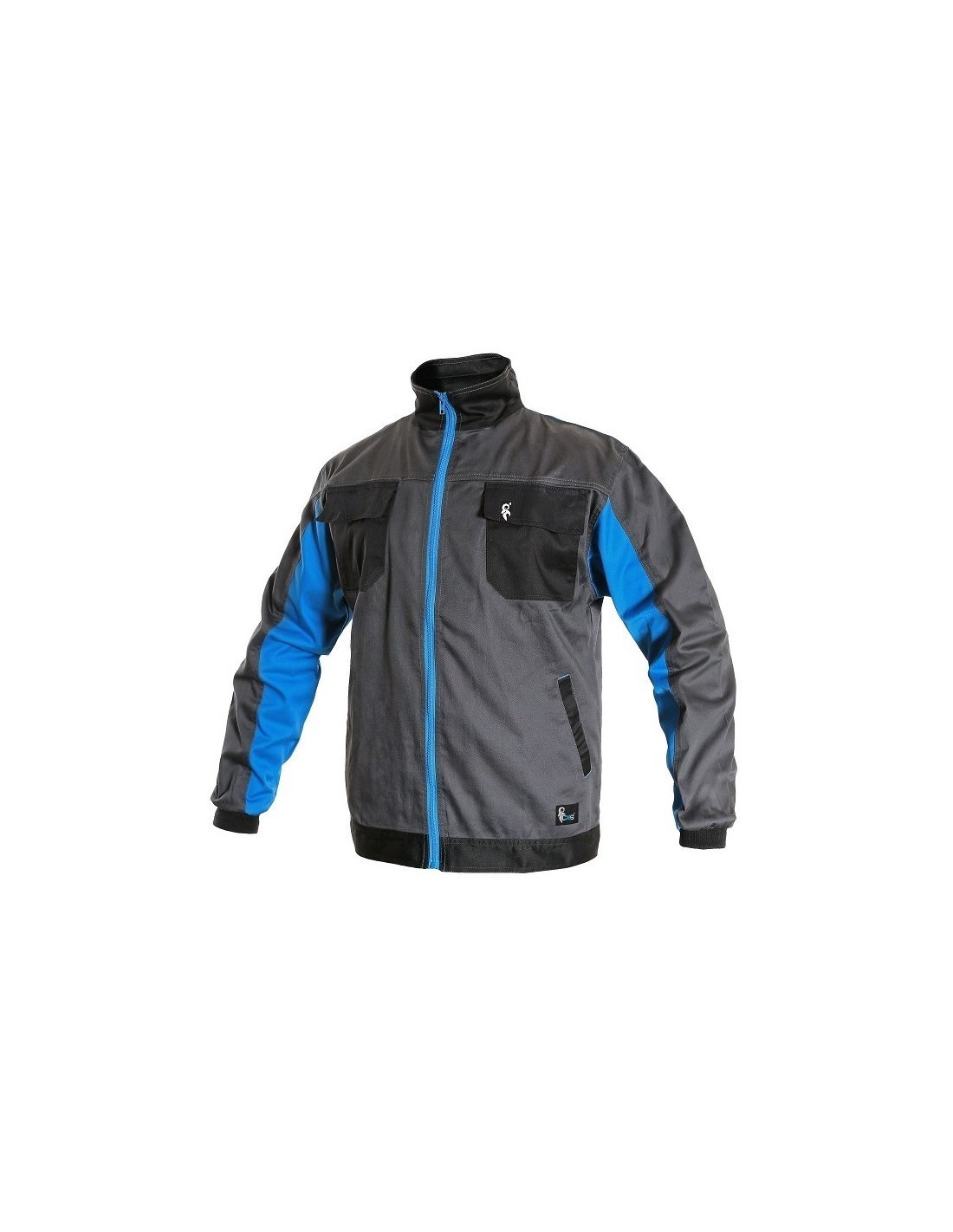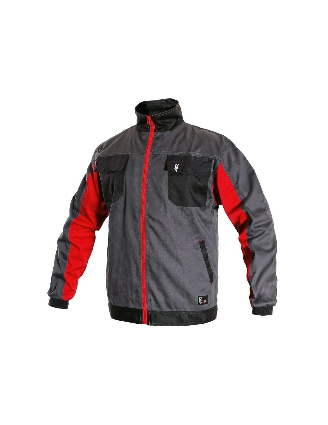 Bluză de lucru confecționată din amestec twill 35% bumbac cu 65% poliester, densitate material 190g/mp, mâneci cu manșetă elastică, închidere cu fermoar, buzunare cu clapetă la piept, buzunare laterale simple, culori: gri-negru-albastru, gri-negru, gri-negru-rosu, gri-negru-galben