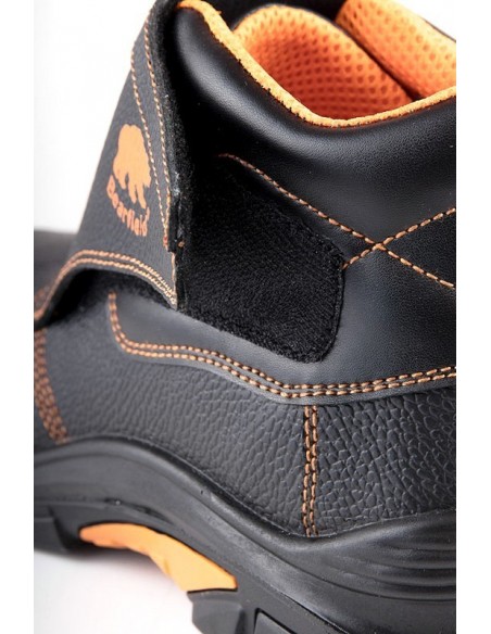 Bocanci de protecţie S3 HRO, cu bombeu şi lamelă antiperforaţie din material compozit, feţe din piele pigmentată de bovină, de 1.8 mm hidrofobizată, închidere cu velcro, căptușeală din material textil rezistent la abraziune, branț detașabil, talpă din poliuretan/cauciuc, dublă densitate, rezistentă la temperaturi de contact de 300°C, rezistentă la: uleiuri, grăsimi, hidrocarburi, antiderapantă, antistatică, SRC, conformi cu norma europeană EN 20345-1/2011.
