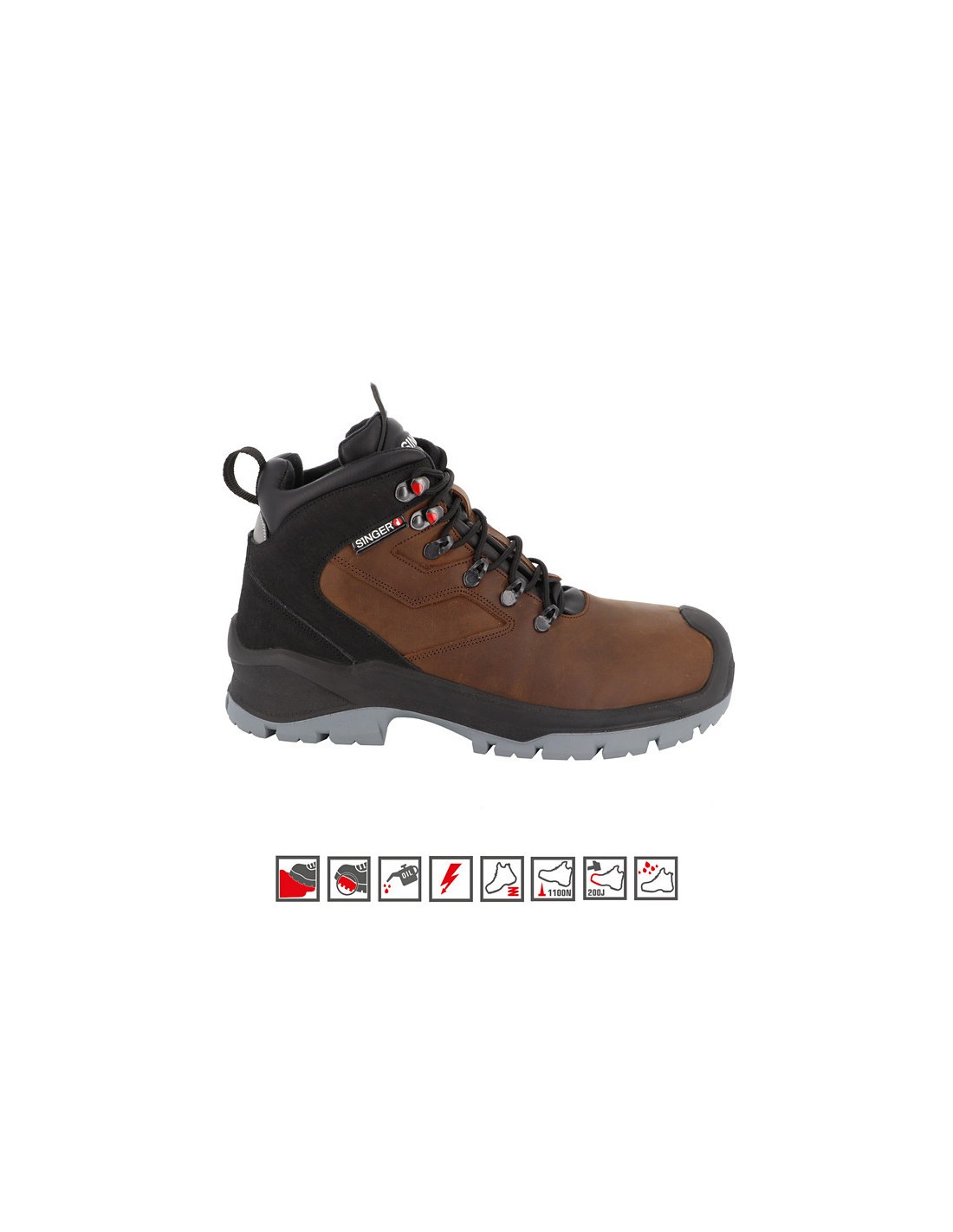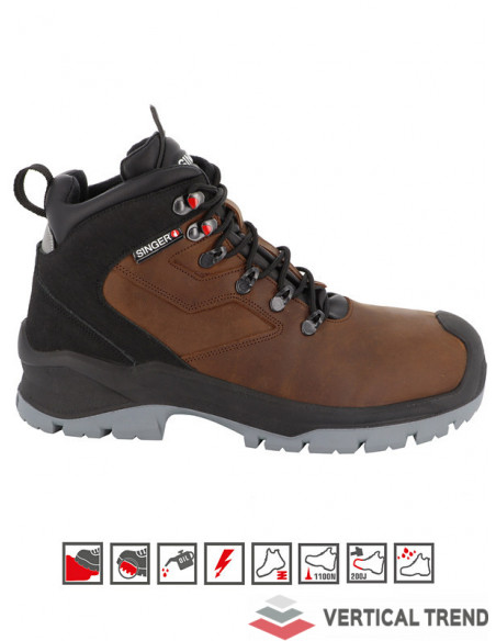 Bocanci de protecţie S3 WR SRC, cu bombeu din material compozit şi lamelă antiperforaţie textilă, confecționați din piele nubuck, tratată pentru a fi rezistentă la apă, branț ergonomic din PU,limba cu clini, inchidere cu șireturi, talpă din poliuretan dublă densitate rezistentă la:uleiuri, grăsimi, hidrocarburi, antiderapantă, antistatică, SRC.
