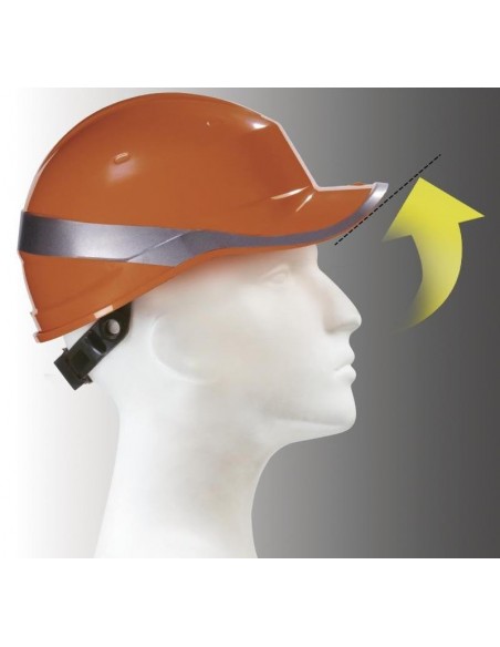 Cască de protecţie din ABS, formă inovatoare de "şapcă de baseball" cu scopul de a îmbunătăţi câmpul vizual al utilizatorului, ham de susţinere din poliamidă cu 3 benzi textile şi 8 puncte de prindere, bandă din burete antitranspiraţie, sistem de reglaj a dimensiunii prin intermediul unui buton de la 53-63 cm, culori fluorescente pentru înaltă vizibilitate, rezistentă la temperaturi cuprinse între -30°C şi +50°C. În funcţie de situaţie, poate fi purtată şi pe faţă şi pe spate. Izolaţie electrică de la 1000 VAC la 1500 VDC.