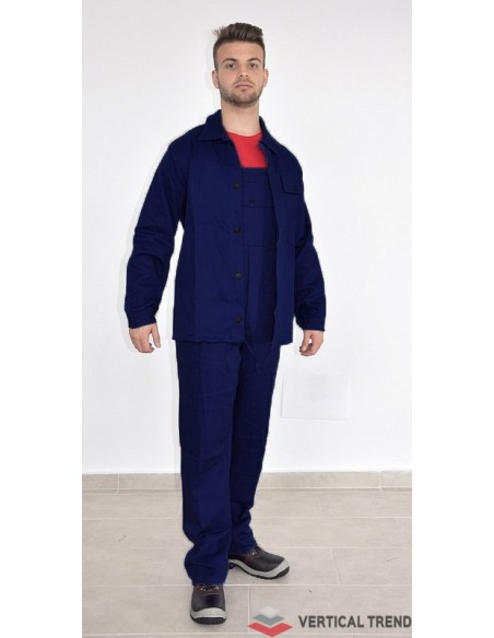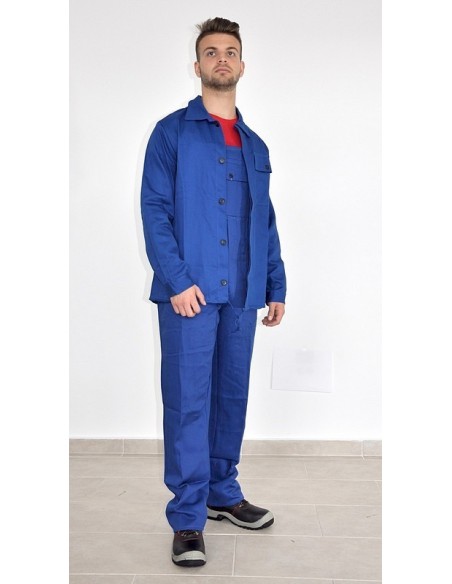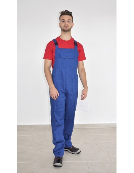 Salopetă de lucru cu pieptar confecționată din doc, bumbac 100%, densitate 240 g/m2. Salopeta este compusă din pantaloni cu pieptar cu trei buzunare, două laterale şi unul la piept şi bluzon cu două buzunare laterale. Închiderea bluzonului se face cu nasturi şi un şiret în talie.