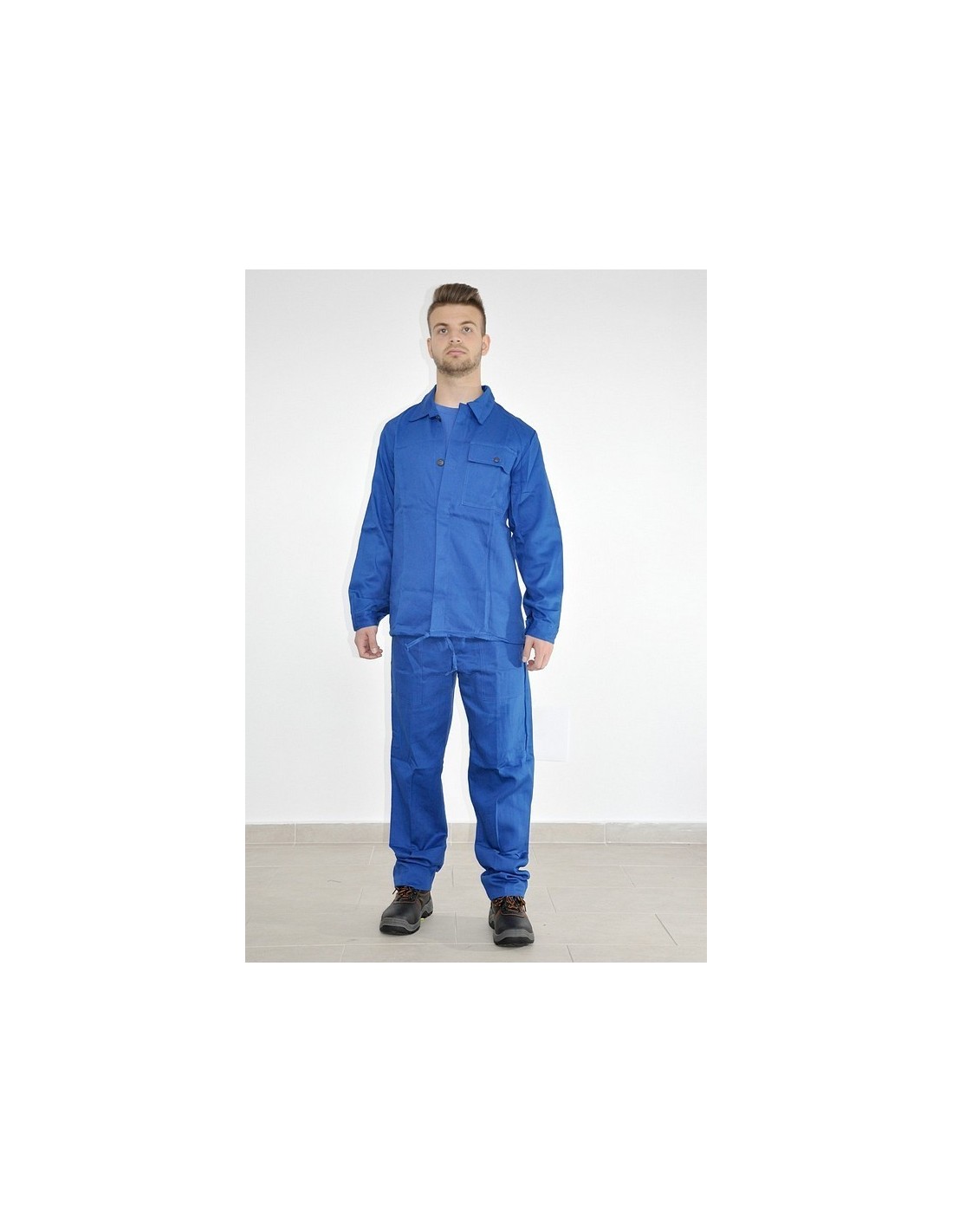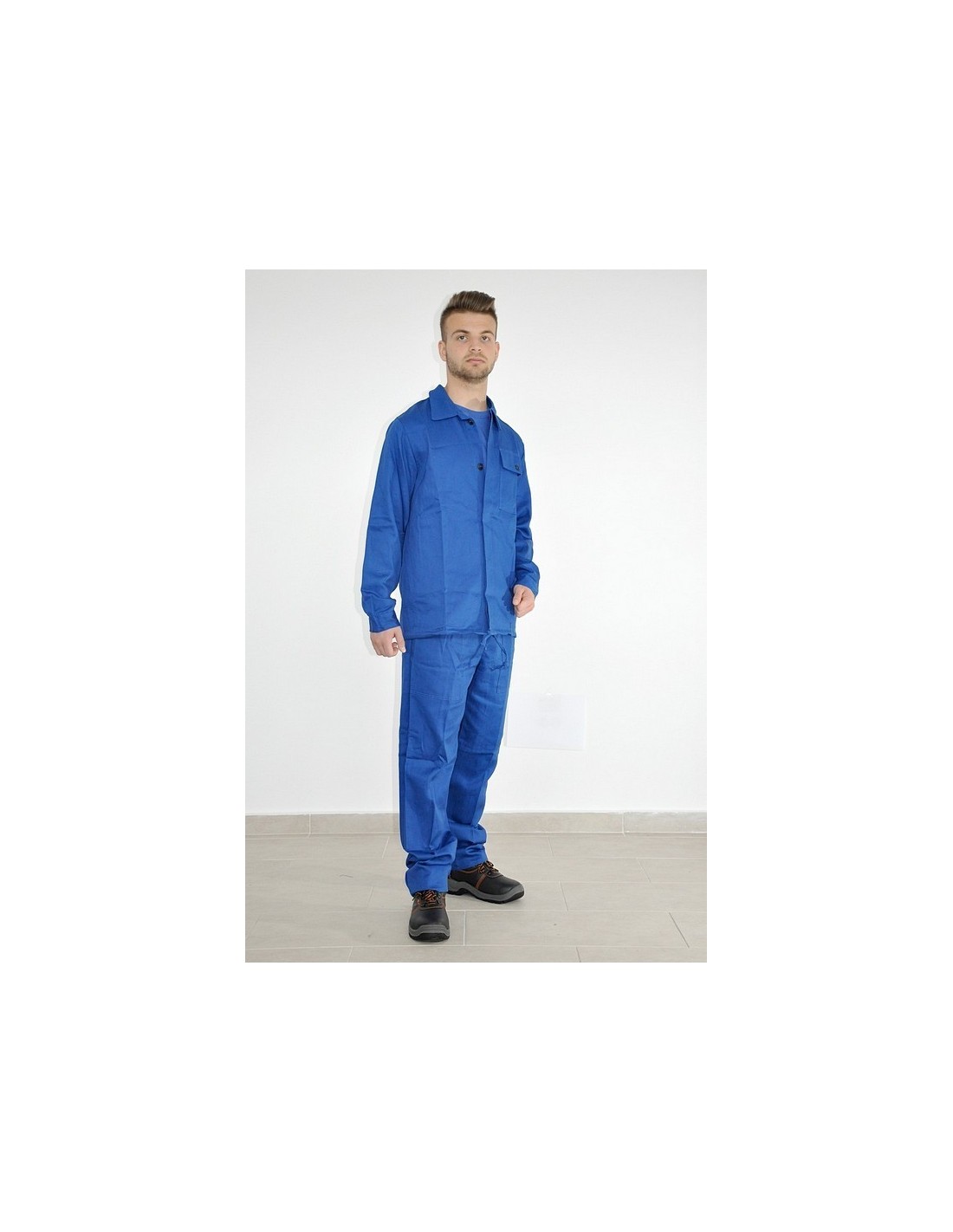 Salopetă de lucru în talie confecționată din tercot cu o compoziţie de 65% poliester și 35% bumbac, 240 g/m2. Salopeta este compusă din pantaloni în talie cu două buzunare laterale şi bluzon cu două buzunare laterale. Închiderea bluzonului se face cu nasturi şi un şiret în talie.