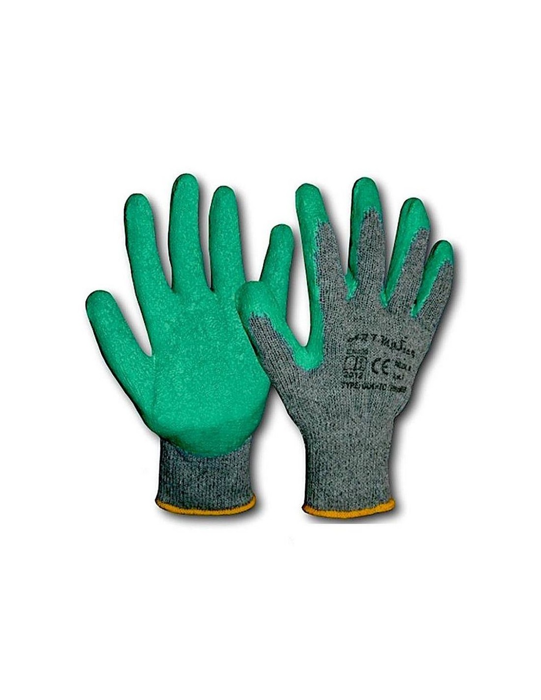 Mănuşi tricotate din bumbac/poliester imersate în latex în palmă şi pe degete, dos aerisit, folosite în special pentru manipularea obiectelor alunecoase. EN 420, EN 388