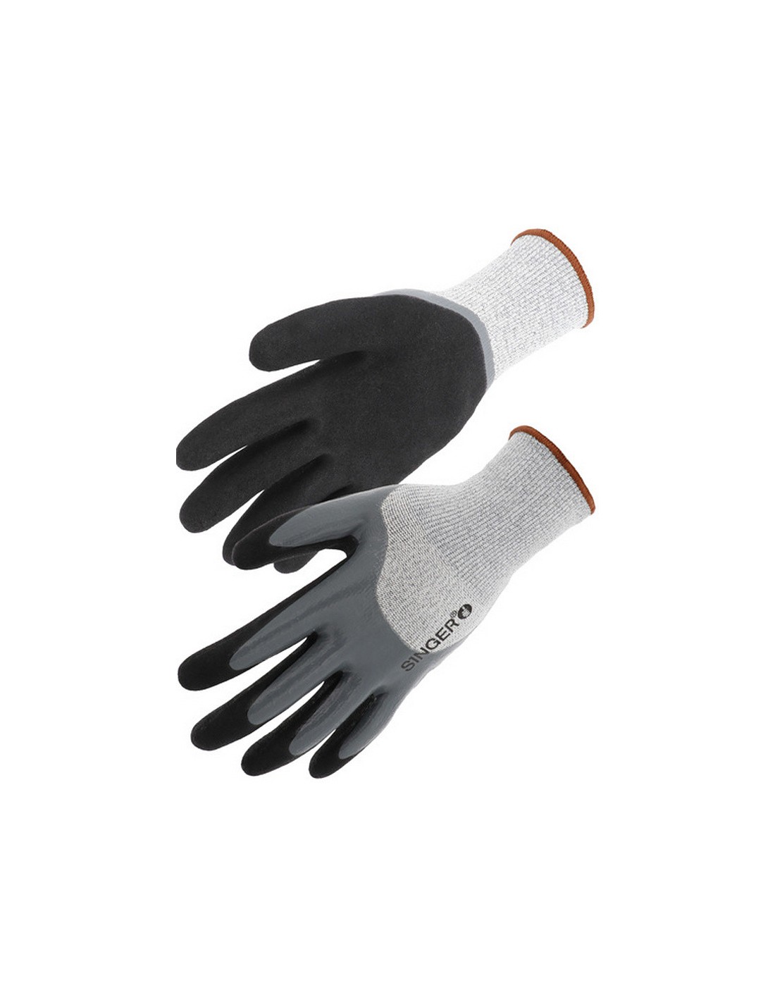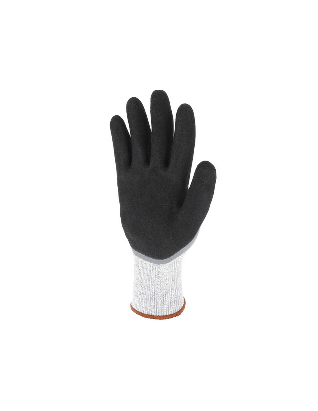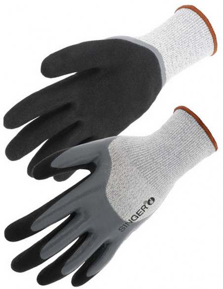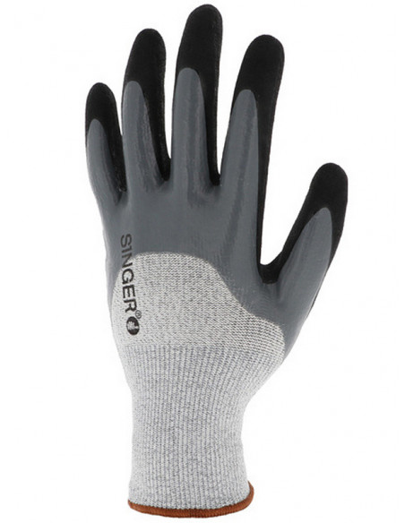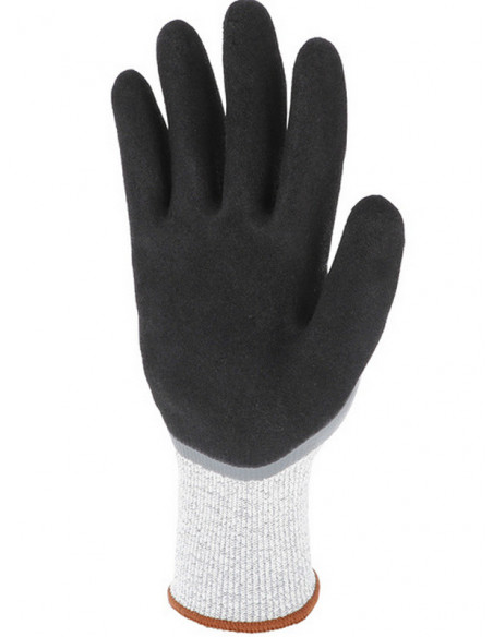 Mănuşi rezistente la taieturi tricotate din fir HPPE, acoperite 3/4 cu un strat de spumă de nitril în palmă şi pe degete şi pe spate, iar al 2-lea strat confera o aderenţă sporită. Manșetă tricotată elastică.