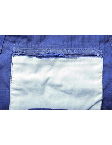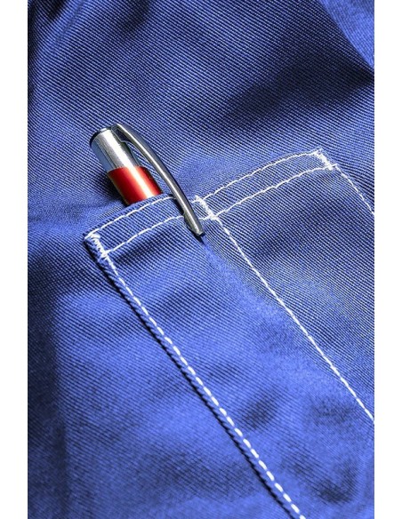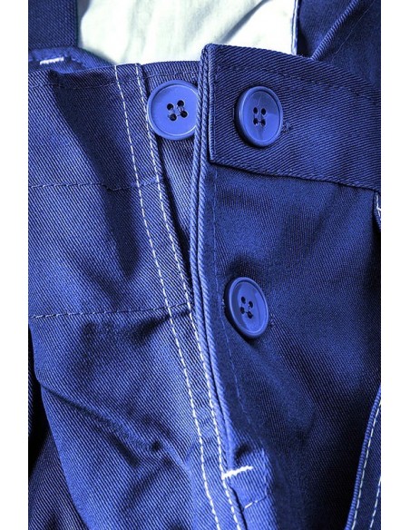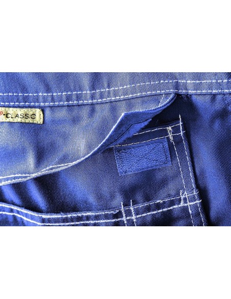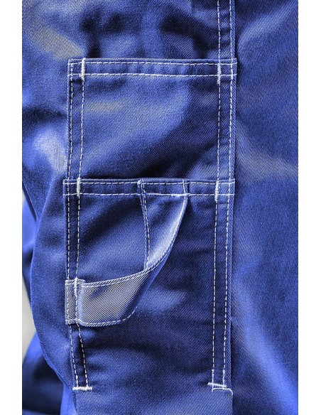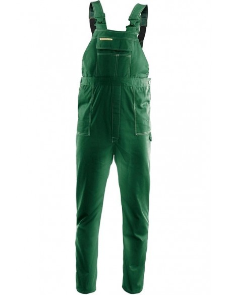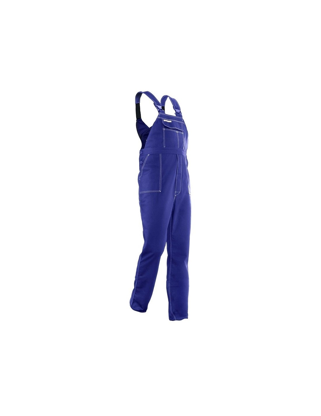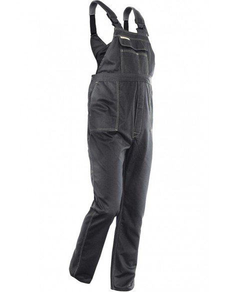 Pantaloni cu pieptar confecționați din tercot (35% bbc – 65% poliester), 290 g ⁄m², ajustabili cu elastic la spate și nasturi în părțile laterale, fixare cu bretele elastice ajustabile cu tridenți, 2 buzunare laterale, unul la piept, unul în interior pentru documente și 2 lateral pe piciorul stâng în dreptul genunchiului, bucle suport pentru diferite scule și pentru ciocan, cusături duble contrastante și întărituri în punctele predispuse la rupere.