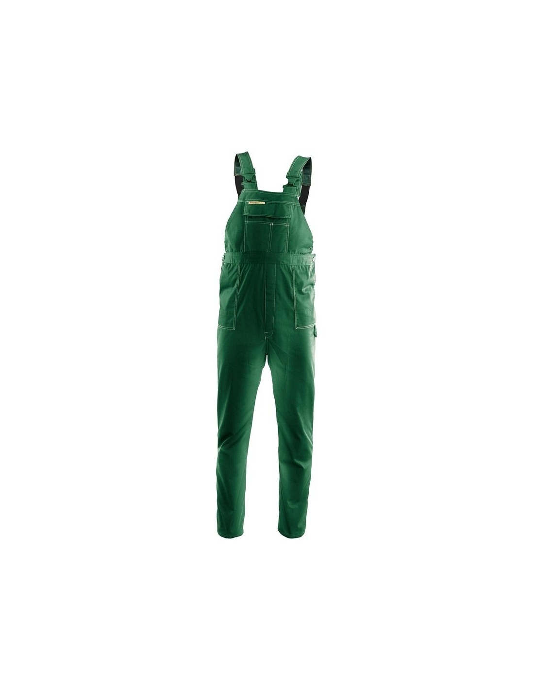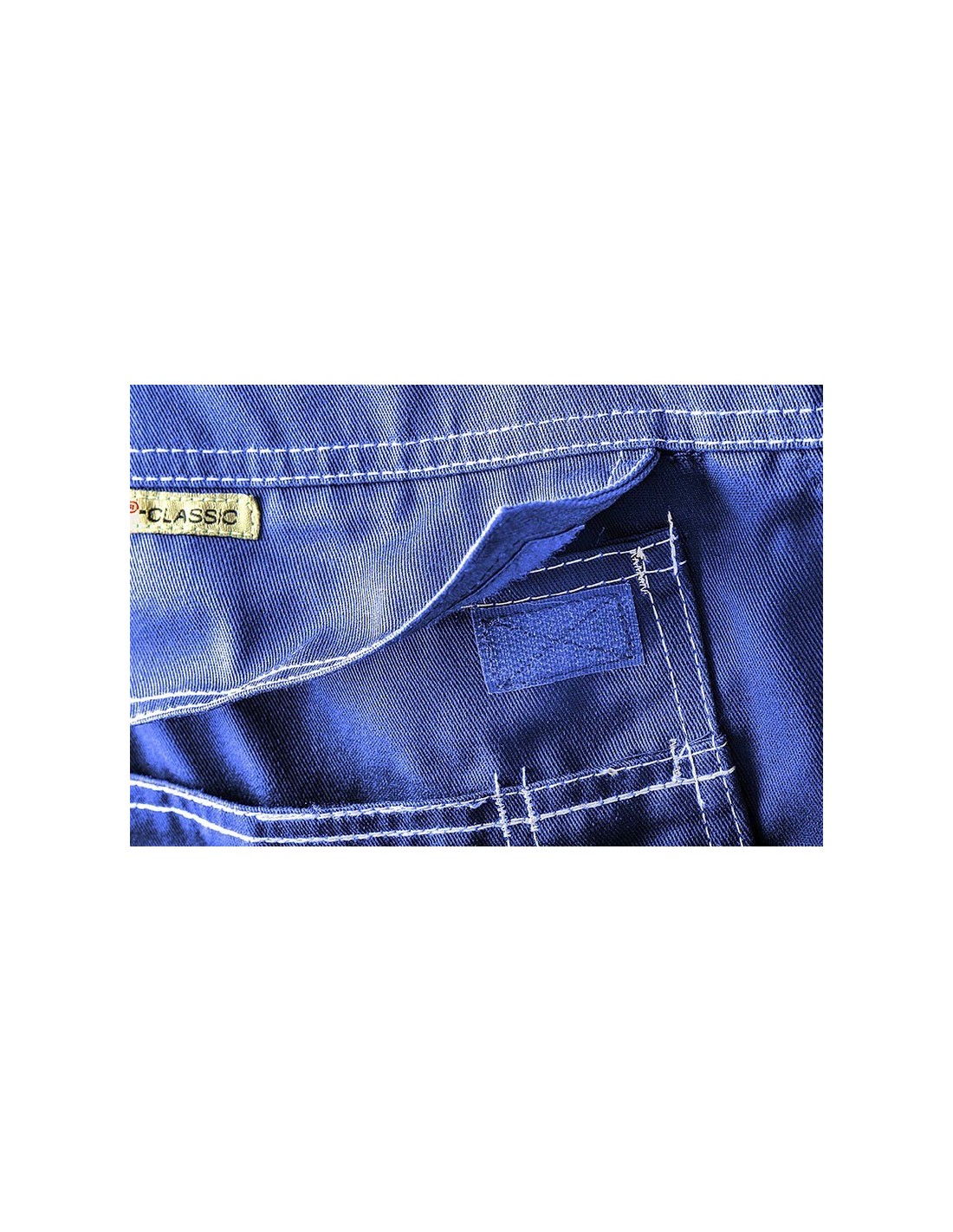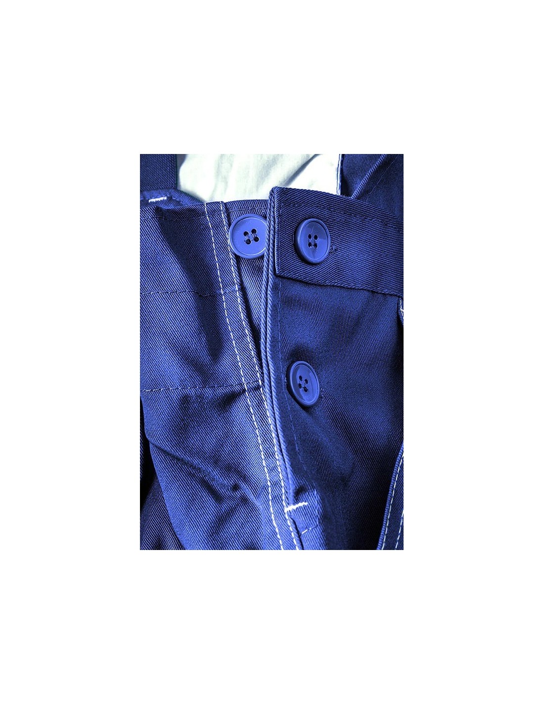Pantaloni cu pieptar confecționați din tercot (35% bbc – 65% poliester), 290 g ⁄m², ajustabili cu elastic la spate și nasturi în părțile laterale, fixare cu bretele elastice ajustabile cu tridenți, 2 buzunare laterale, unul la piept, unul în interior pentru documente și 2 lateral pe piciorul stâng în dreptul genunchiului, bucle suport pentru diferite scule și pentru ciocan, cusături duble contrastante și întărituri în punctele predispuse la rupere.