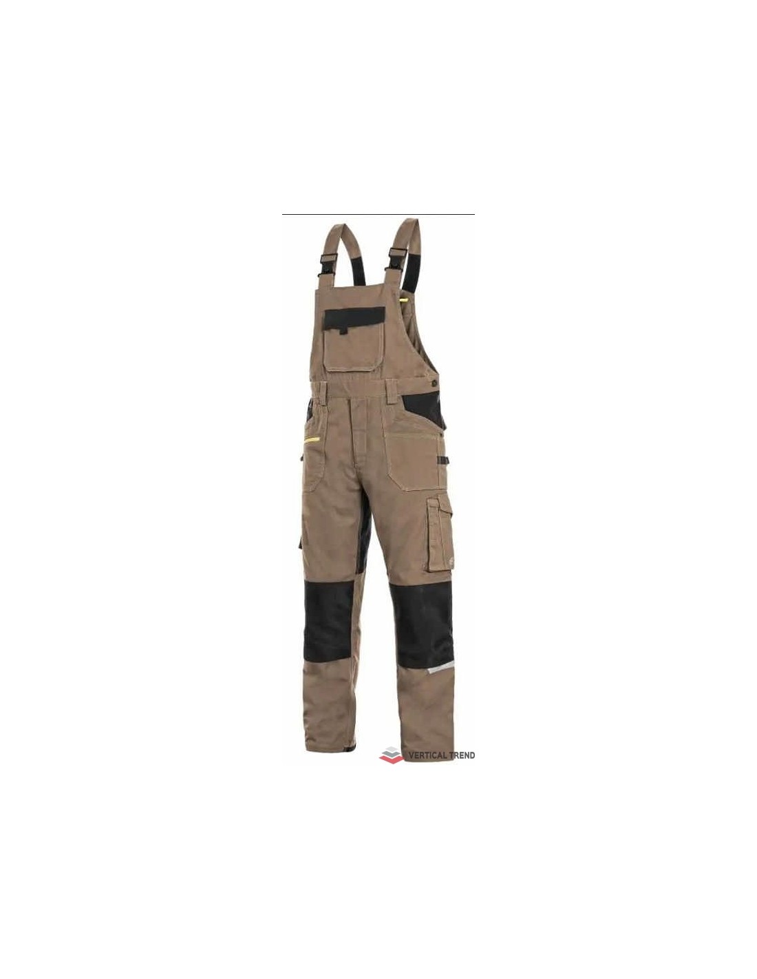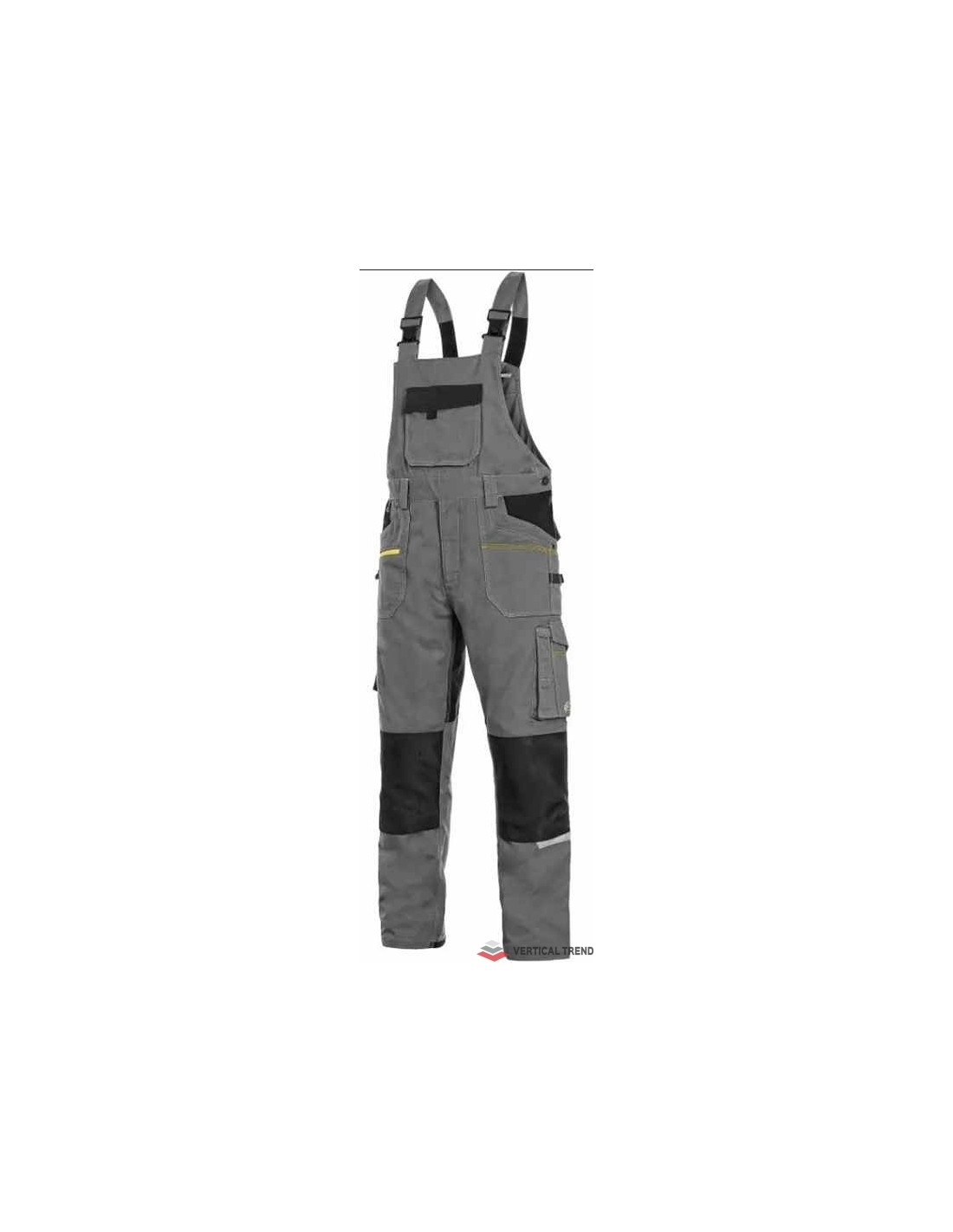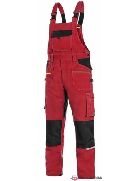 Pantaloni de lucru cu pieptar, confecționați din amestec usor elastic canvas 98% bumbac cu 2% elastan, densitate material 250g/mp, buzunar cu clapetă pe piept, talie cu găici de curea, buzunare frontale cu buzunar cu fermoar, buzunare multifuncționale pe ambele părți, întăriți cu poliester 600D, cu deschidere pentru genunchiere, două buzunare la spate - unul cu clapă, tiv inferior posterior întărit cu poliester 600D, elastic, accesorii reflectorizante, culori: albastru-negru, bleumarin-negru, bej-negru, gri-negru