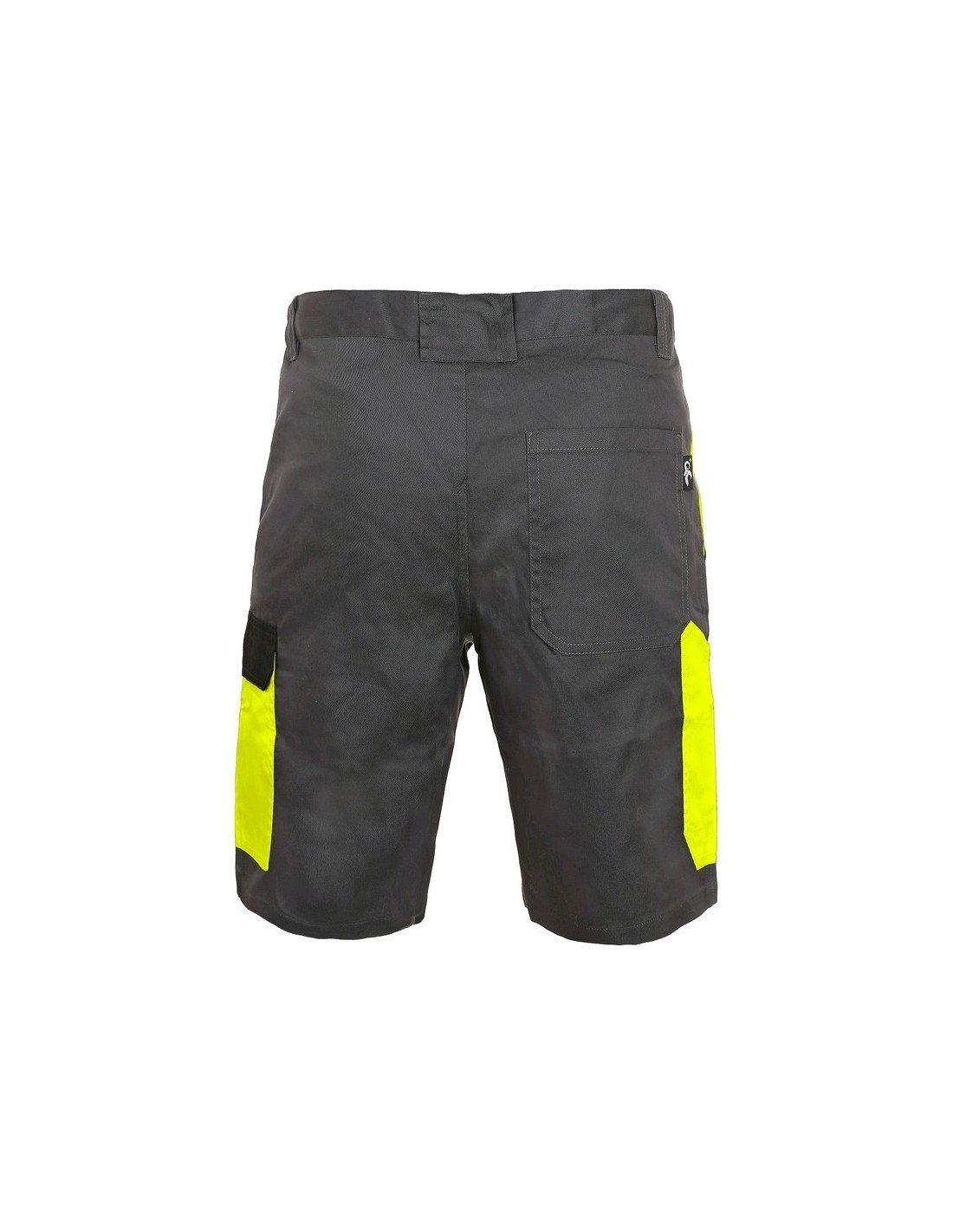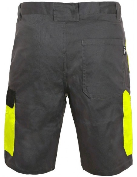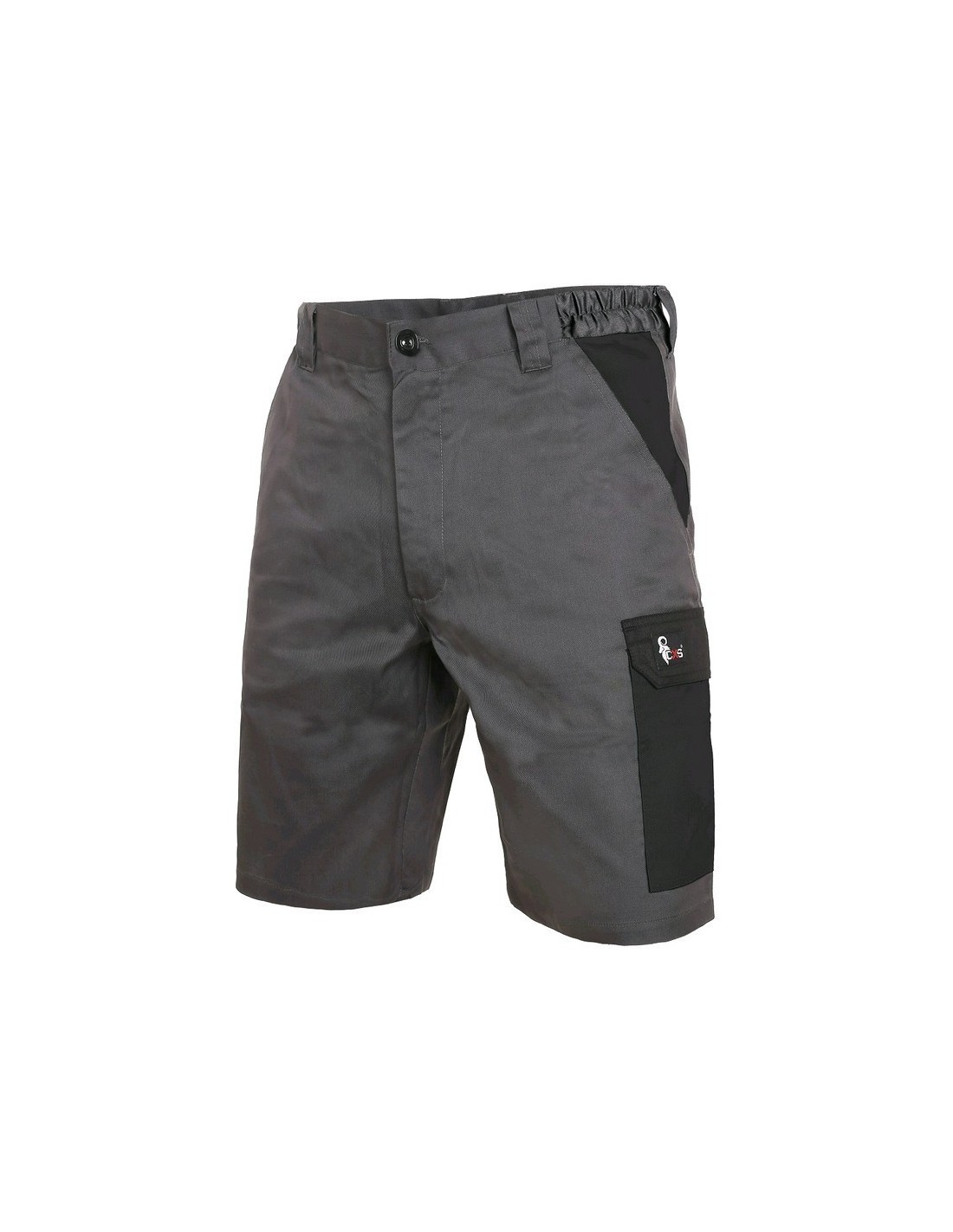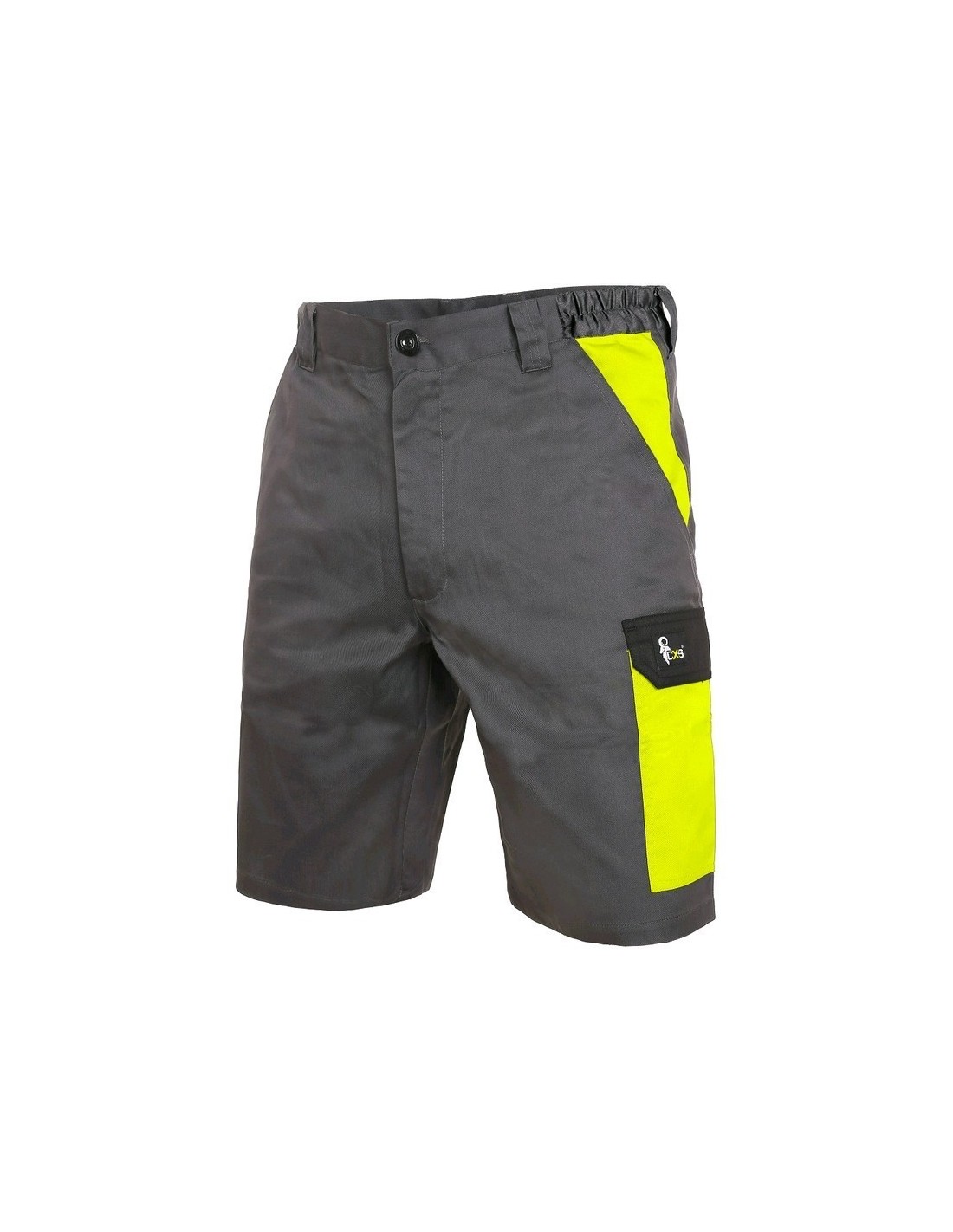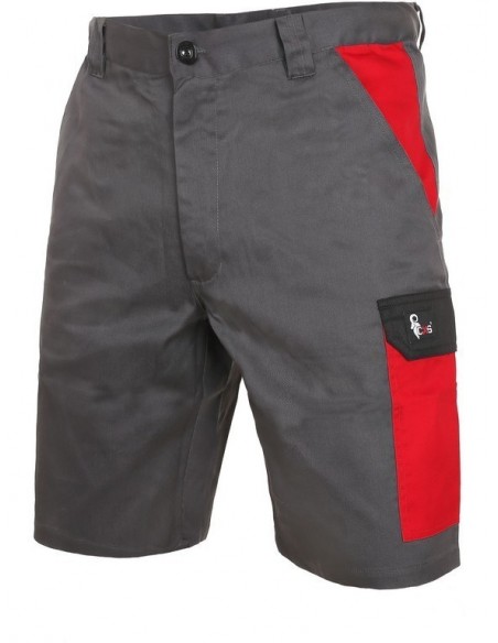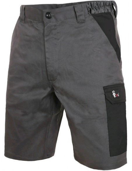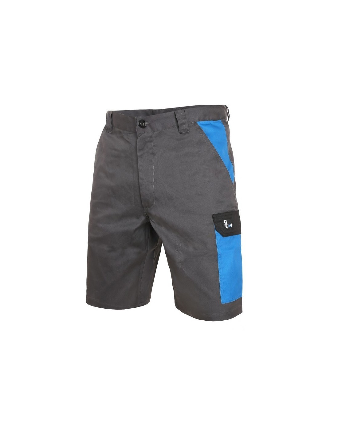 Pantaloni de lucru scurți, pentru vară, confecționați din amestec twill 35% bumbac cu 65% poliester, densitate material 190g/mp, talie cu găici de curea, buzunare frontale, buzunar cu clapetă pe lateral, buzunar simplu la spate, culori: gri-negru-albastru, gri-negru, gri-negru-roșu, gri-negru-galben